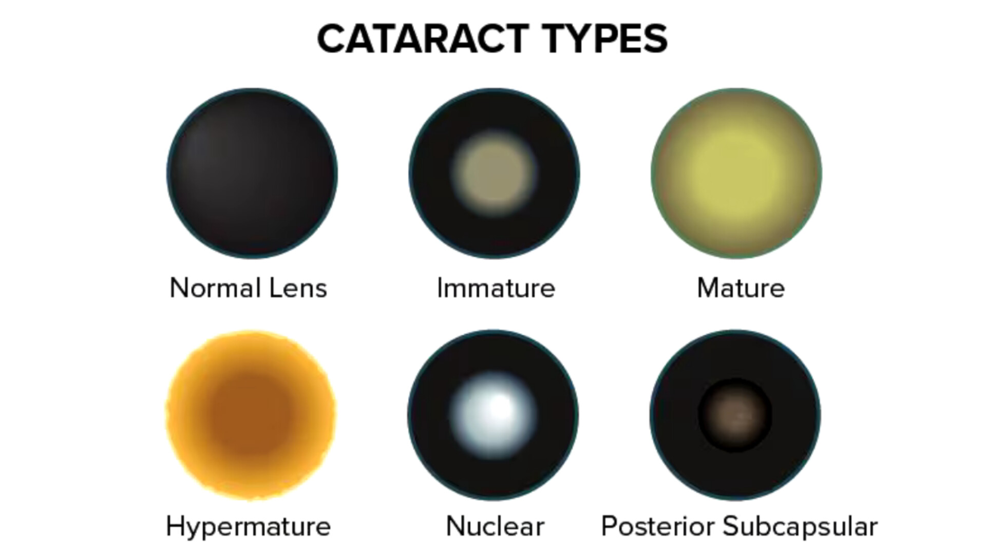 سه نوع اصلی آب مروارید شامل هسته‌ ی، قشری و زیرکپسولی خلفی هستند.